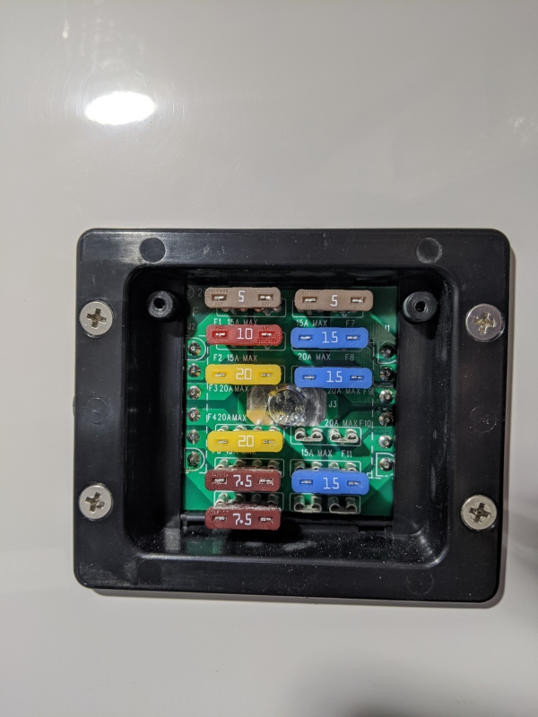 All component breakers & fuses for the 2020 models are located in the lower shell. Some components may have inline fuses and therefore are not located or labeled here inside the breaker/fuse box. Standard models with charger built into converter box ...
